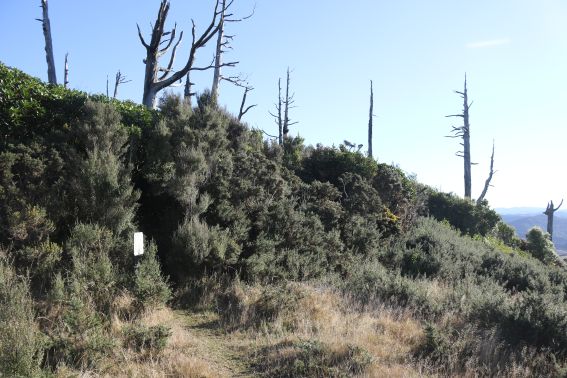 Not far from Calvert Dell is the junction with the Leith Loop lookout track. Beyond the junction the track drops into the creek for the last time, and then climbs and sidles towards the power lines that run between Dunedin and towns to the north.