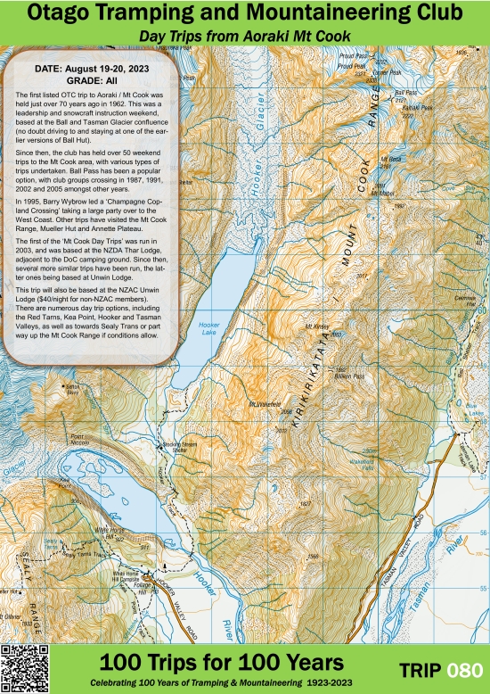 Since then, the club has held over 50 weekend trips to the Mt Cook area, with various types of trips undertaken. Ball Pass has been a popular option, with club groups crossing in 1987, 1991, 2002 and 2005 amongst other years.