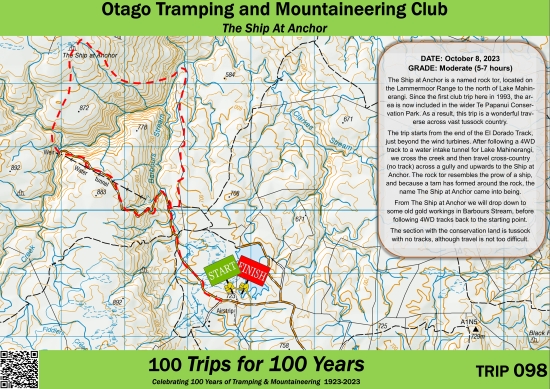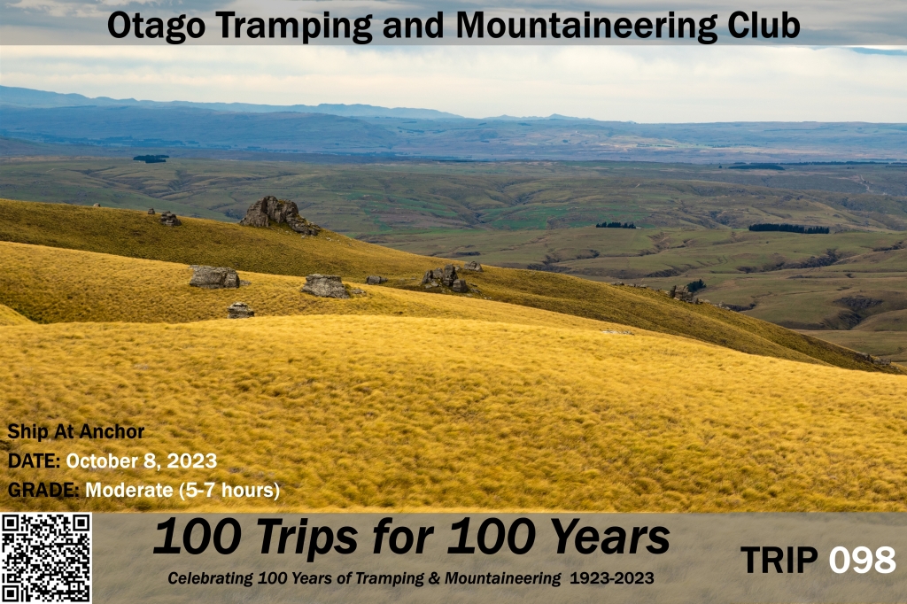 The Ship at Anchor is a named rock tor, located on the Lammermoor Range to the north of Lake Mahinerangi. Since the first club trip here in 1993, the area is now included in the wider Te Papanui Conservation Park. As a result, this trip is a wonderful traverse across vast tussock country.